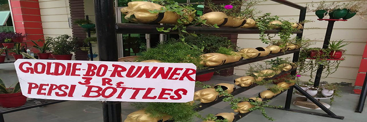 Goldee plastic boo runner is a non mundane initiative made from plastic bottles and waste caste iron pipe giving the illusion of a horizontal green house .children plant saplings and go through the entire journey of sapling maturation thereby giving them a gist into the lifecycle of sapling and teaching them the wonder of nature.