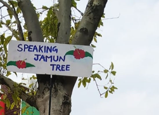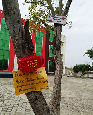 SPEAKING JAMUN TREE a platform where children are free to express their inner voice on a piece of paper (problems, sorrows, happiness, excitement) which is then hung on the JAMUN tree maintaining the anonymity.