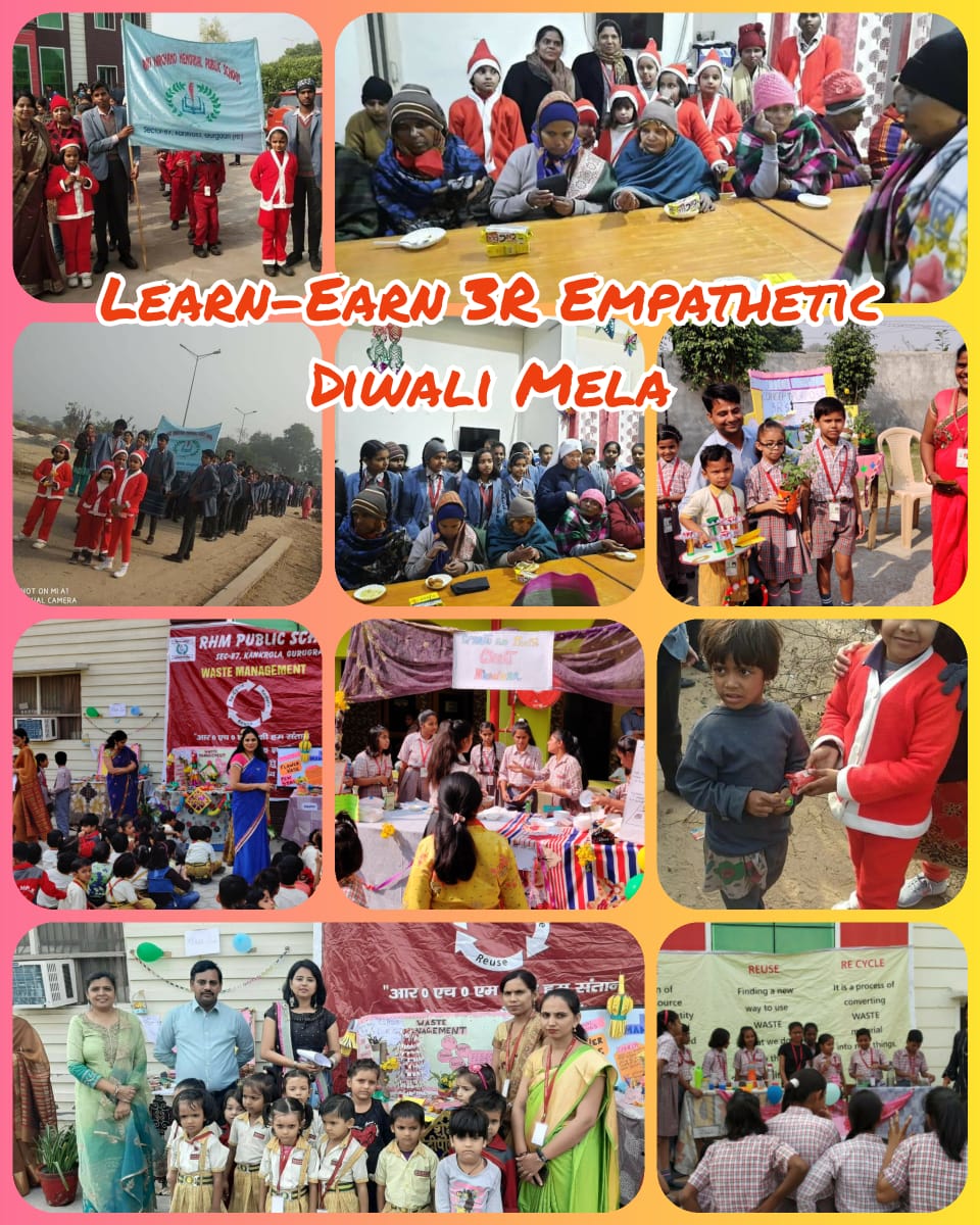 Every year our school organises LEARN -EARN EMPATHETIC 3R MELA on the auspicious occasion of Diwali . it is an year long campaign where teachers are assigned to help them with their" best out of waste "interhouse activities " on saturdays every week which primarily focuses on waste management,finance management, real life exposure, boycotting Chinese products and advocating indian eco friendly self made creations using the 3 R ...reduce,reuse and recycling.